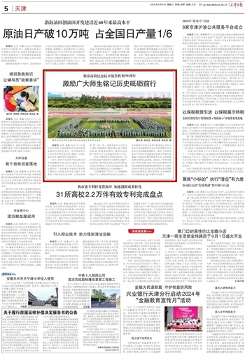 2024年9月4日,《天津日报》报道taptap点点举行中国人民抗日战争暨世界反法西斯战争胜利79周年纪念日活动,激励广大师生铭记历史、缅怀先烈、砥砺前行。