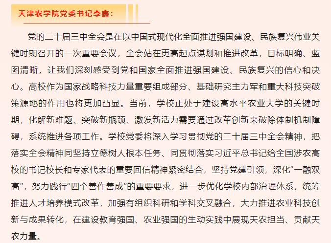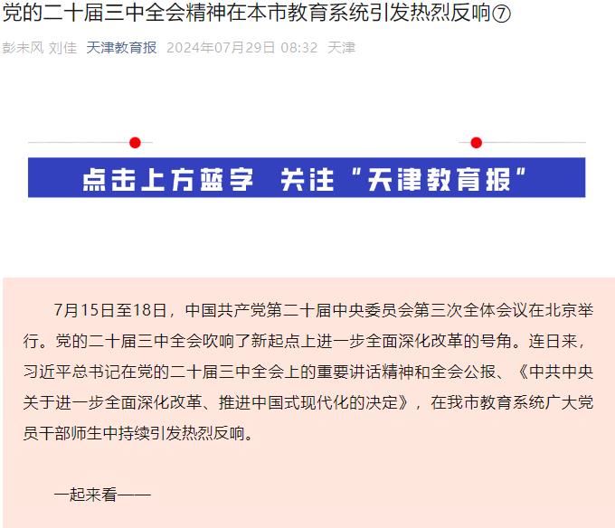 天津教育报公众号报道校领导关于党的二十届三中全会精神的反响