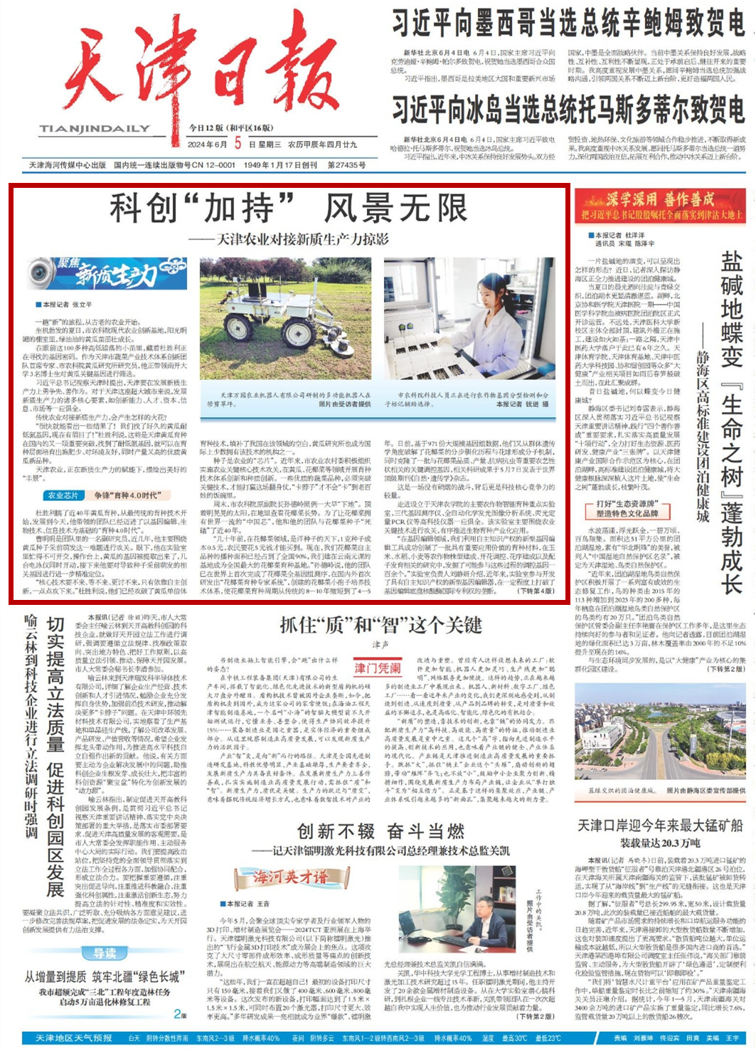 2024年6月5日,《天津日报》头版报道了taptap点点主要农作物智能育种重点实验室。近年来,实验室参与开发了具有自主知识产权的新型基因编辑器,在一定程度上打破了基因编辑底盘核酸酶的国际专利权的垄断。