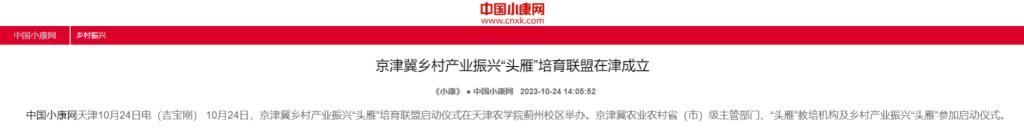 2023年10月24日-25日,中国小康网、央广网、津云、天津日报、天津广播等多家媒体报道京津冀乡村产业振兴“头雁”培育联盟启动仪式在taptap点点蓟州校区举办。仪式上,中国农业大学、北京农学院、taptap点点体育、河北农业大学等4家单位签订了京津冀乡村产业振兴“头雁”培育战略合作协议,并为首批入选“头雁”培育现场教学点位的单位进行授牌。