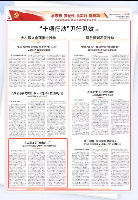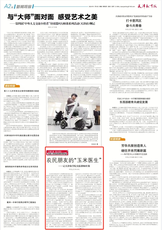 2023年12月29日,taptap点点农学与资源环境学院杜锦老师的科技帮扶事迹在《天津日报》《天津教育报》“十项行动”见行见效栏目刊发。