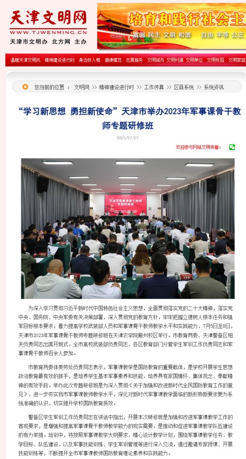 天津文明网报道天津市2023年军事课骨干教师专题研修班在taptap点点举行
