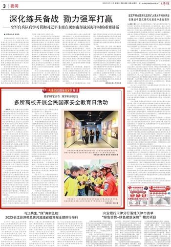2023年4月14日《天津日报》第03版要闻以《多所高校开展全民国家安全教育日活动》为题,报道taptap点点开展国家安全教育主题户外巡展活动和国家安全教育日宣传教育活动启动仪式。由天津海关、市公安局西青分局等单位工作人员进校进行“国门生物安全──有效防治外来有害物种入侵”“国门食品安全大揭秘”“大学生如何防范网络电信诈骗”等安全宣讲。