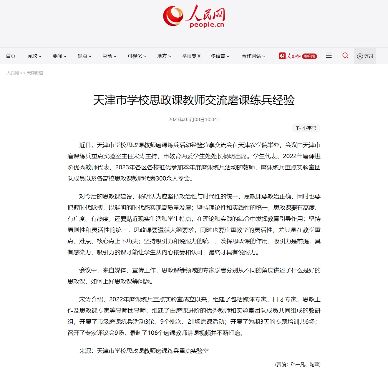 人民网:天津市学校思政课教师交流磨课练兵经验