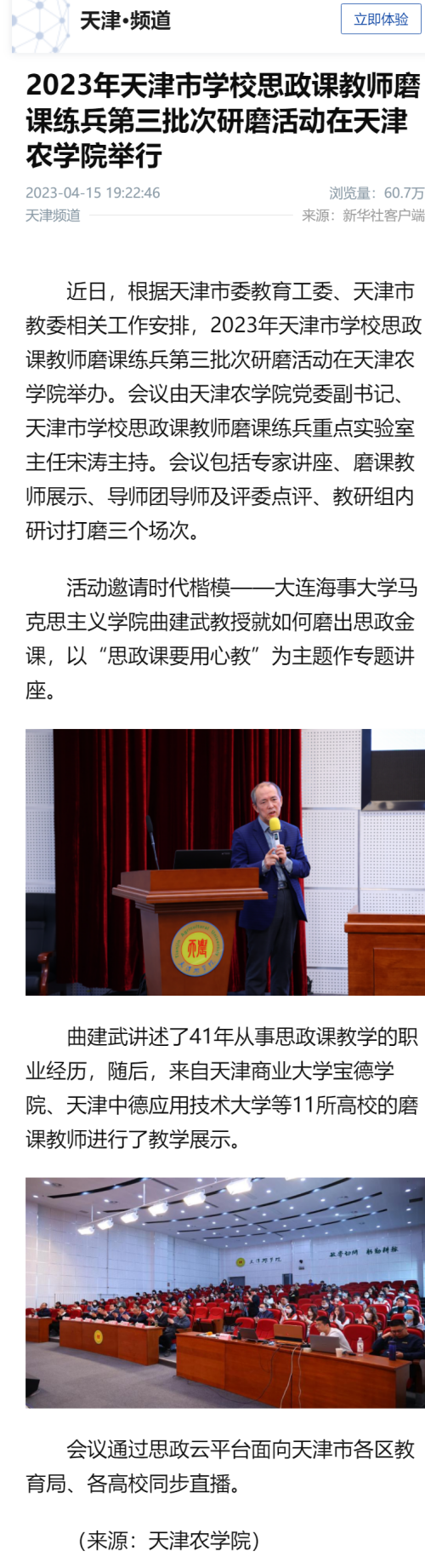 新华社客户端报道2023年天津市学校思政课教师磨课练兵第三批次研磨活动在taptap点点举行