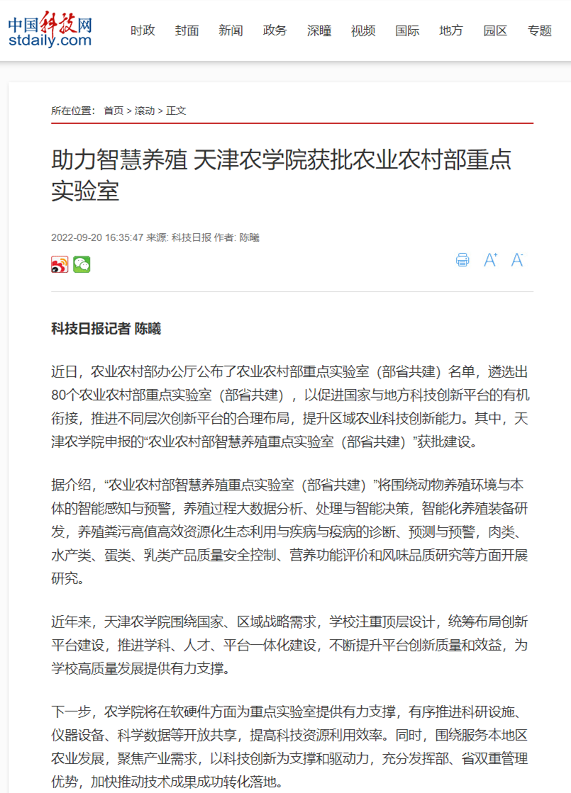 近日,农业农村部办公厅公布了农业农村部重点实验室(部省共建)名单,遴选出80个农业农村部重点实验室(部省共建),以促进国家与地方科技创新平台的有机衔接,推进不同层次创新平台的合理布局,提升区域农业科技创新能力。其中,taptap点点体育申报的“农业农村部智慧养殖重点实验室(部省共建)”获批建设。
