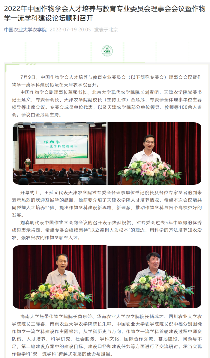 2022年中国作物学会人才培养与教育专业委员会理事会会议暨作物学一流学科建设论坛顺利召开