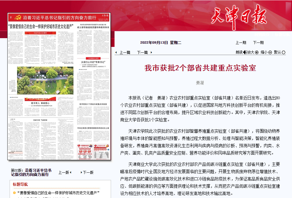 天津商业大学此次获批的农业农村部农产品低碳冷链重点实验室(部省共建),主要瞄准后疫情时代全国及地方经济发展面临的主要问题,开展生物质废弃物原位增值技术、产地农产品贮藏设施低碳高效化技术和进口冷链食品防疫技术,为保证高品质食品安全供应、低碳新能源的供应等方面提供理论和技术支撑,从而把农产品低碳冷链重点实验室建设为相应技术的人才培养高地、理论研发高地和技术输出高地。