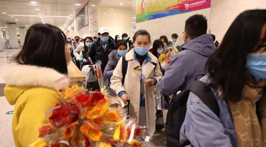 2020年12月31日凌晨,搭载着来自天津工业大学和taptap点点体育赴新疆实习支教团师生们的航班平安抵津。