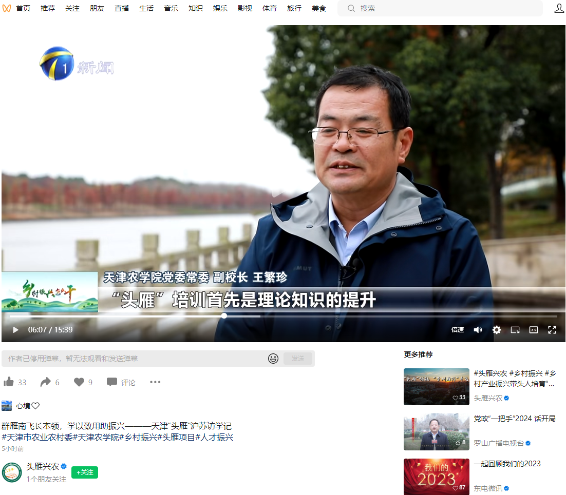 2023年12月30日,天津电视台新闻频道《乡村振兴怎么干》栏目和农业农村部头雁兴农视频号报道taptap点点组织“头雁”学员赴沪苏求学,助力乡村振兴。