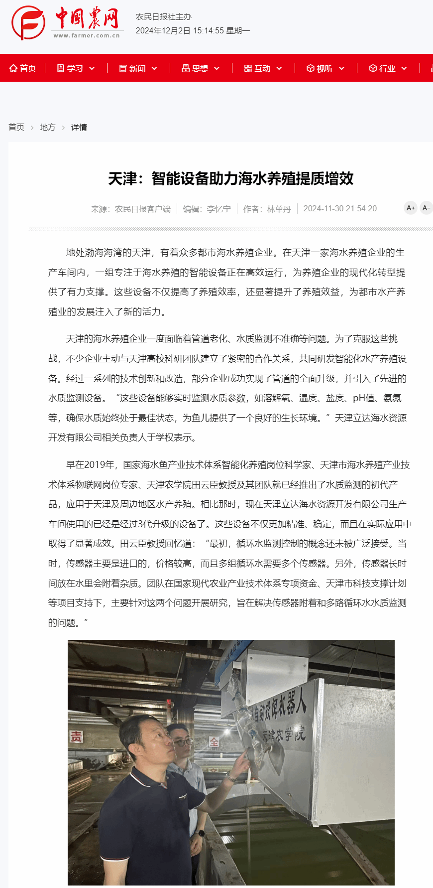 农民日报客户端报道taptap点点田云臣教授及其团队研发智能设备助力海水养殖提质增效