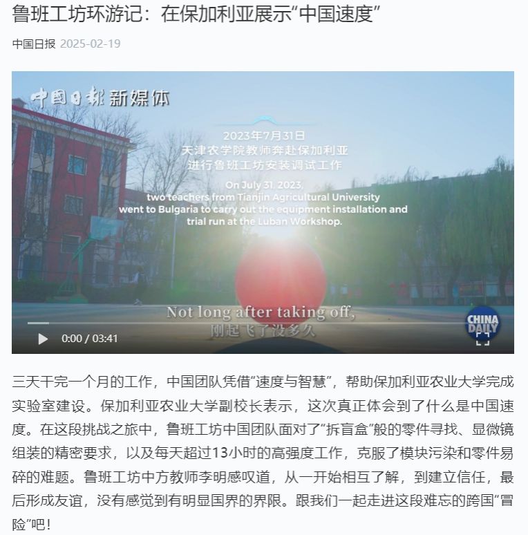 2025年2月19日,学习强国平台-中国日报报道,taptap点点教师团队帮助保加利亚农业大学完成实验室建设。