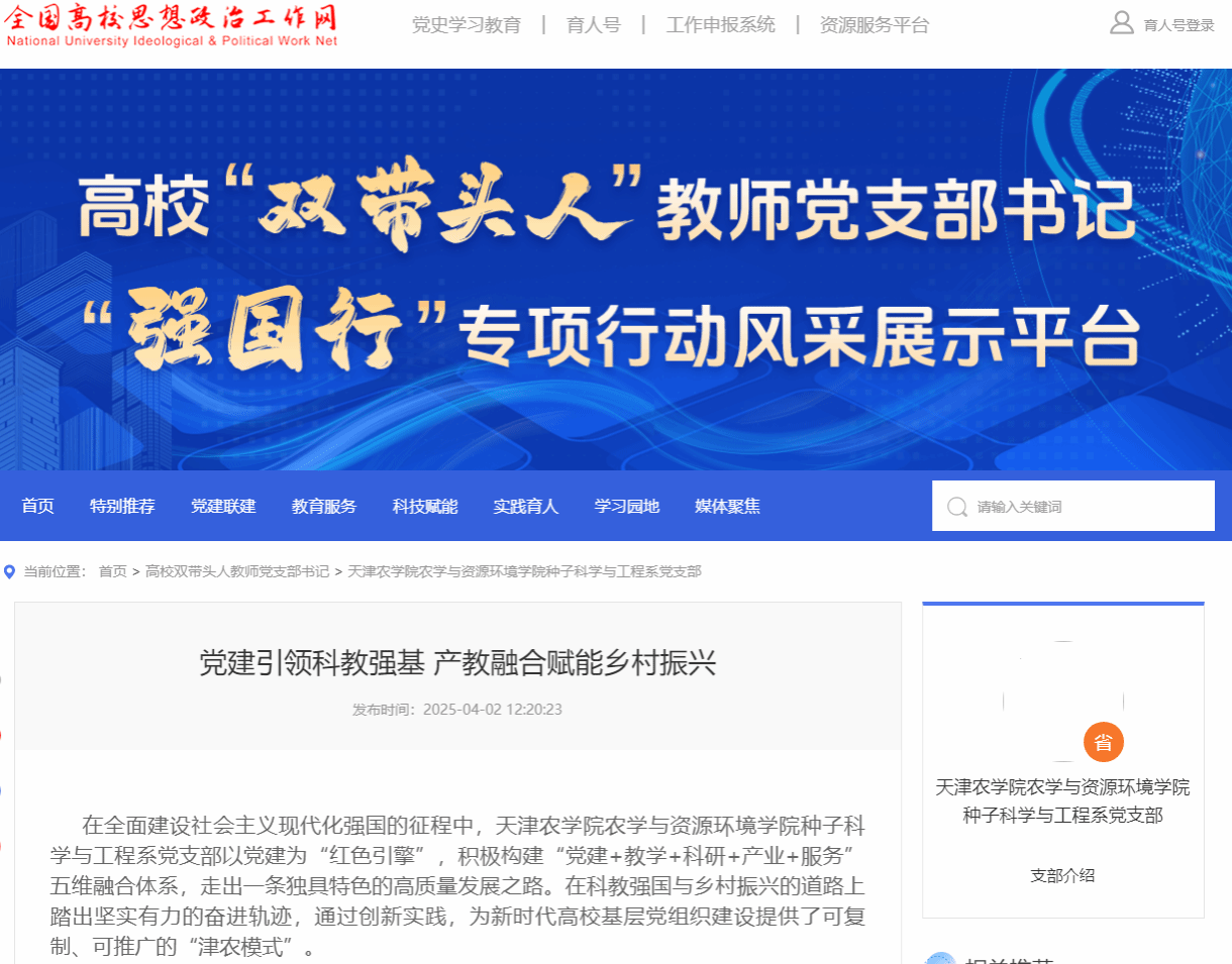 全国高校思想政治工作网刊登taptap点点农学与资源环境学院种子科学与工程系党支部的风采