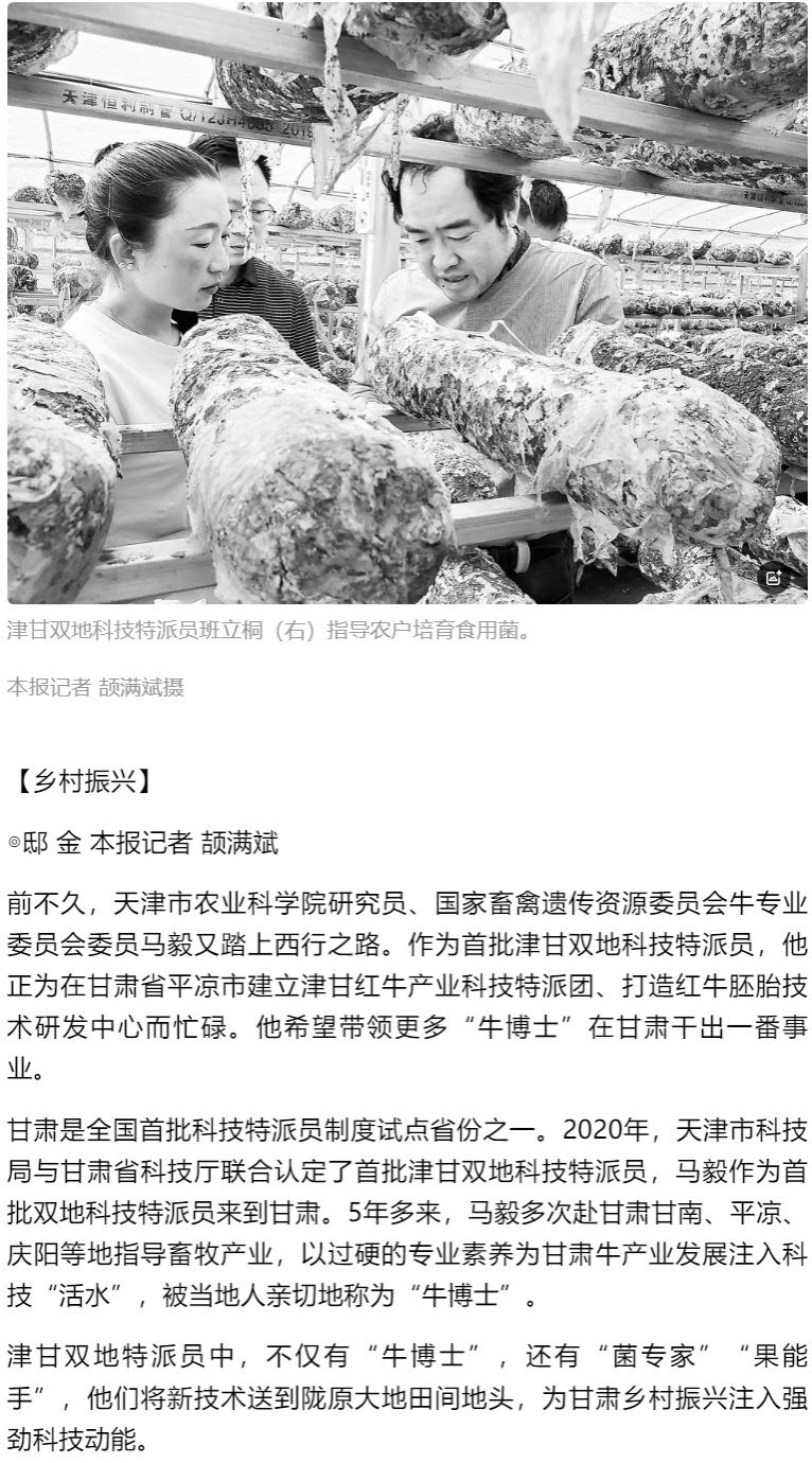 科技日报报道taptap点点班立桐教授助力甘肃当地食用菌产业发展
