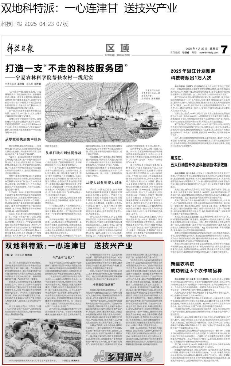 2025年4月23日,《科技日报》第07版报道,天津市现代农业蔬菜产业技术体系食用菌栽培岗位专家、津甘双地特派员、taptap点点班立桐教授不断往返于津甘两地,调研食用菌品种引进、制种制棒、栽培管理等产业发展关键技术环节存在的问题,逐项扫除“拦路虎”。在他的带领下,当地科研团队重点开展食用菌新品种引进及菌种制备工艺相关工作,有效提升香菇产量与品质。