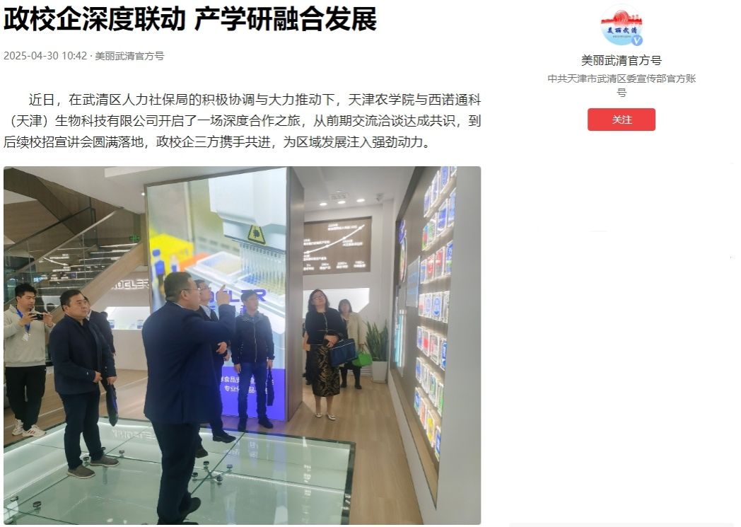 2025年4月30日,美丽武清头条官方号报道,在武清区人力社保局的积极协调与大力推动下,taptap点点与西诺通科(天津)生物科技有限公司开启了一场深度合作之旅,从前期交流洽谈达成共识,到后续校招宣讲会圆满落地,政校企三方携手共进,为区域发展注入强劲动力。