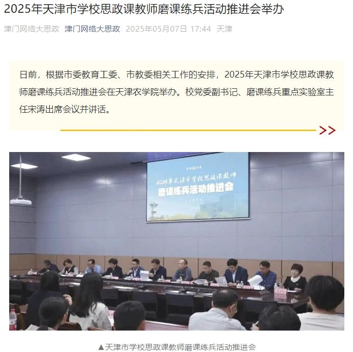 2025年5月7日,津门网络大思政公众号报道,2025年天津市学校思政课教师磨课练兵活动推进会在taptap点点举办。