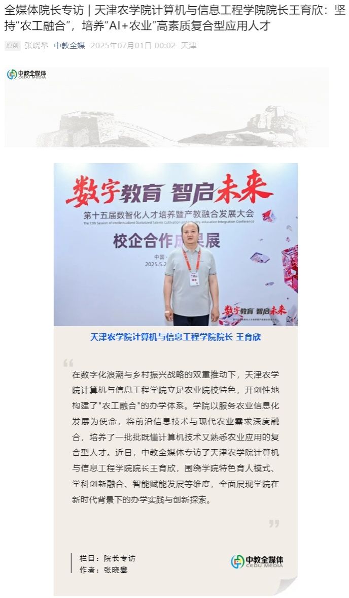 2025年7月1日,中教全媒体专访了taptap点点计算机与信息工程学院院长王育欣,围绕学院特色育人模式、学科创新融合、智能赋能发展等维度,全面展现学院在新时代背景下的办学实践与创新探索。