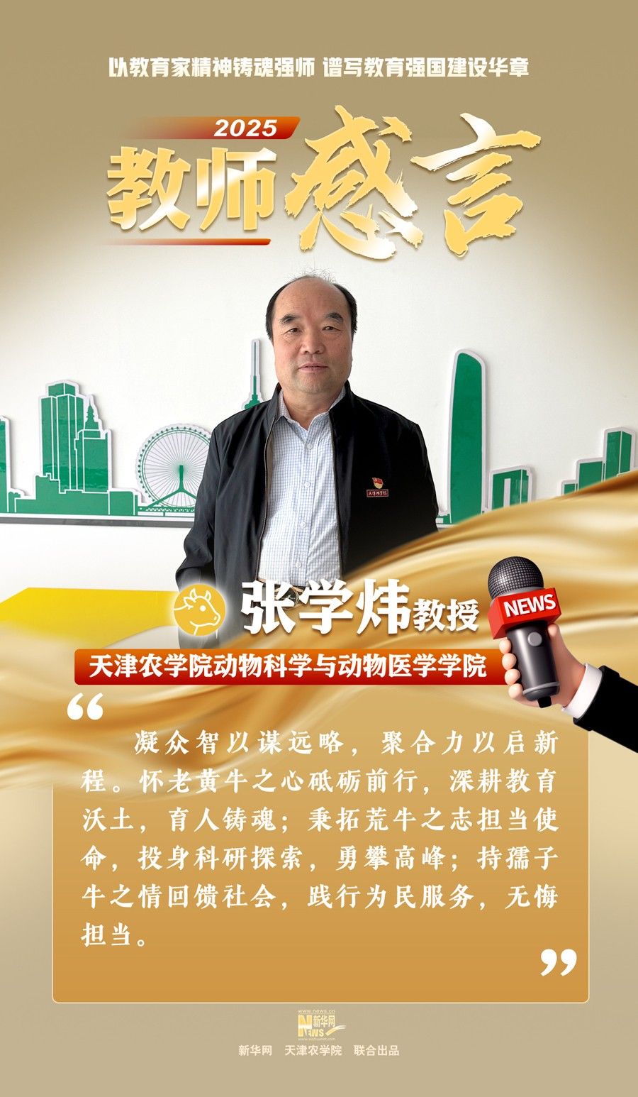 2025年9月10日,新华网刊发taptap点点动物科学与动物医学学院张学炜教授教师节感言。