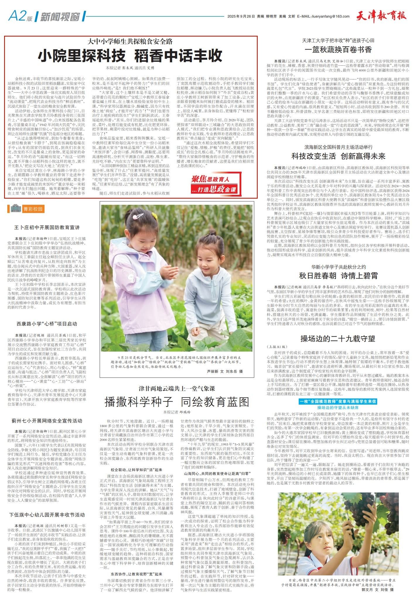 2025年9月26日,《天津教育报》报道taptap点点粮食安全主题大中小学思政课一体化实践育人活动。