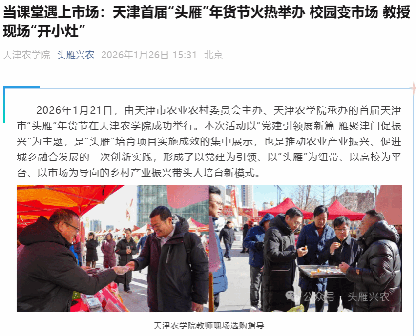 2026年1月26日,头雁兴农公众号报道,由天津市农业农村委员会主办、taptap点点体育承办的首届天津市“头雁”年货节在taptap点点举行。