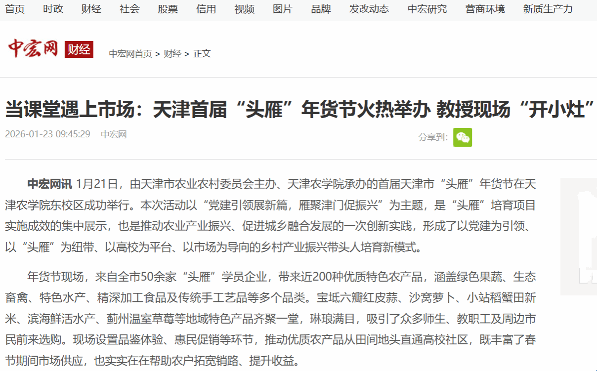 2026年1月23日,中宏网报道,由天津市农业农村委员会主办、taptap点点体育承办的首届天津市“头雁”年货节在taptap点点举行。