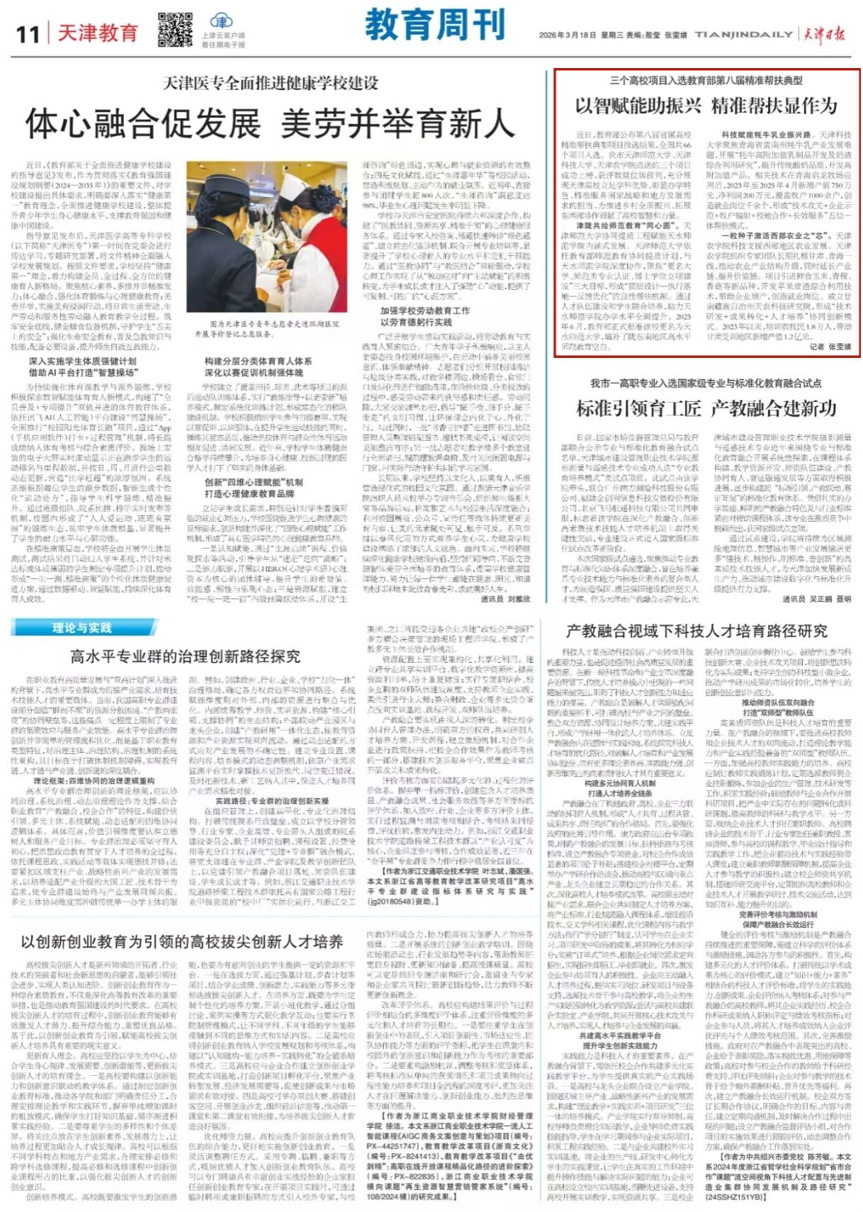 《天津日报》报道taptap点点项目入选教育部第八届精准帮扶典型