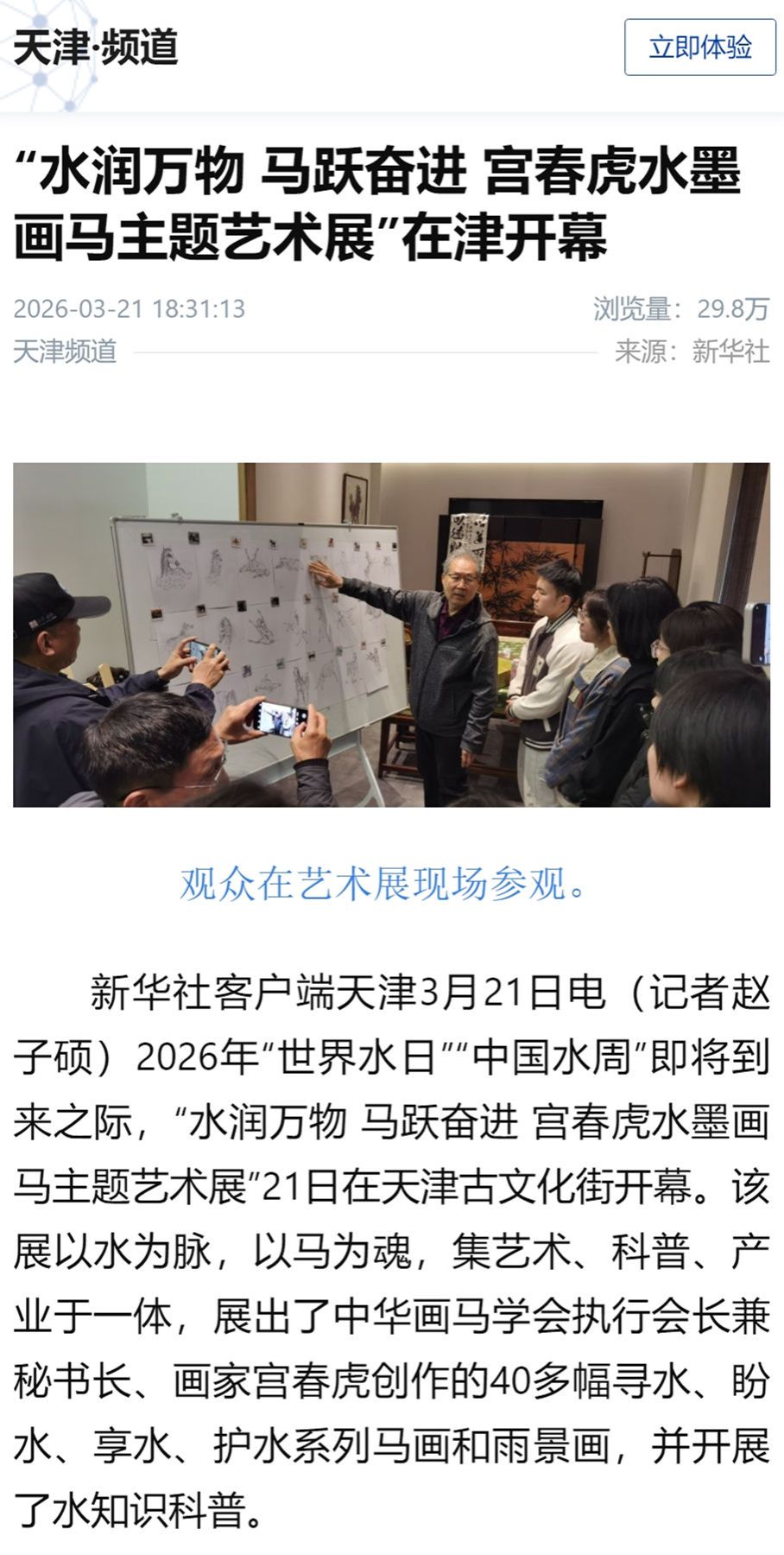 多家媒体报道taptap点点协办的“水润万物 马跃奋进——宫春虎水墨画马主题艺术展”