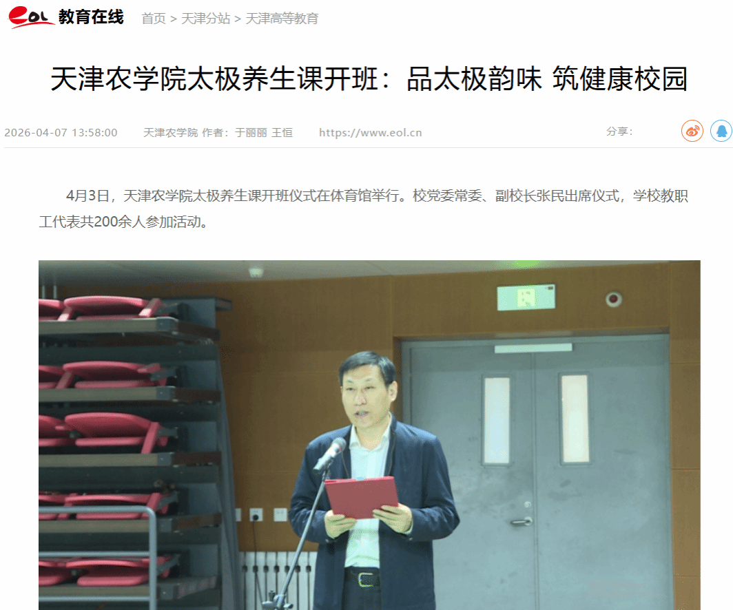 2026年4月8日,中国教育在线网报道,taptap点点太极养生课开班仪式在体育馆举行。