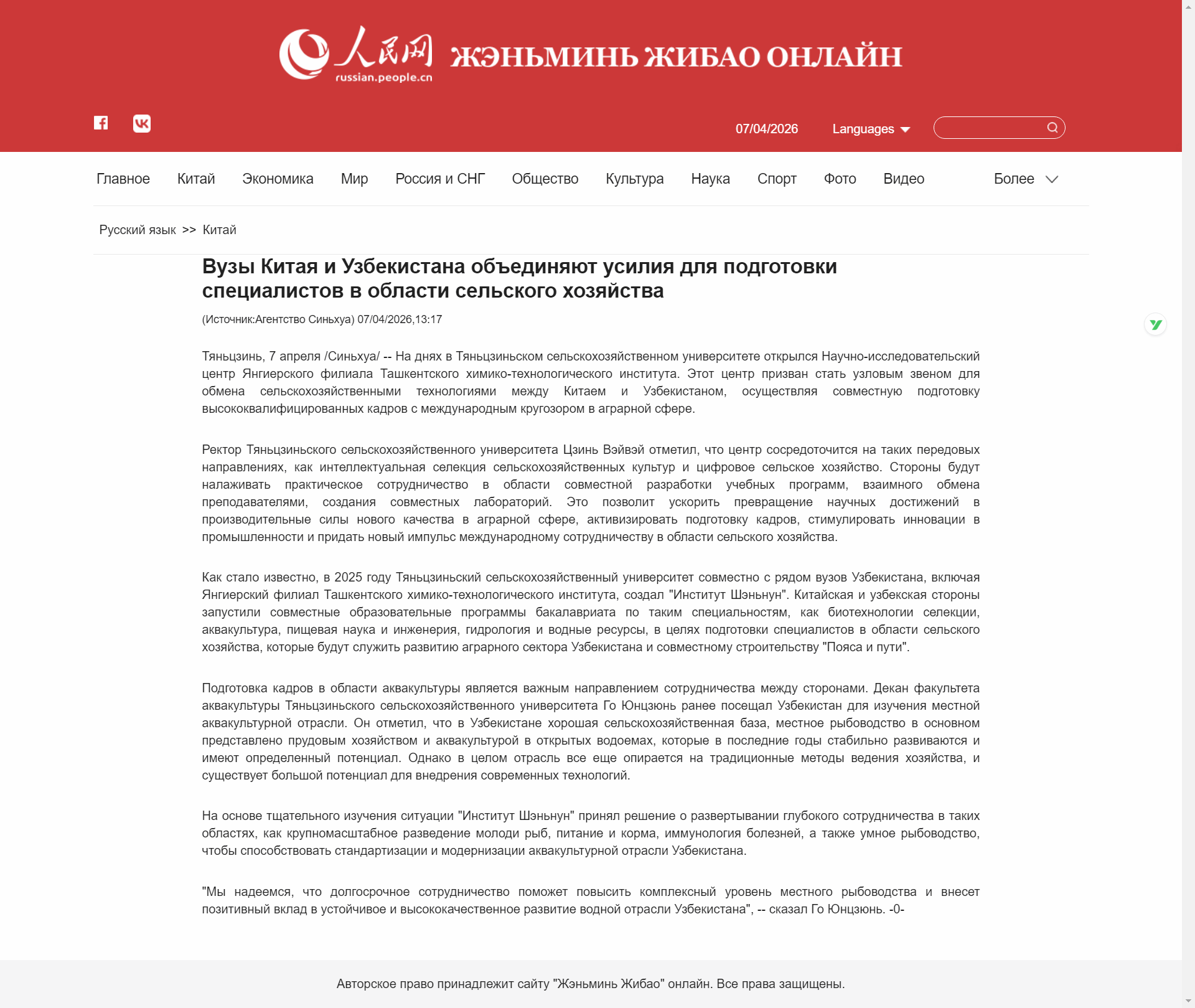 2026年4月8日,人民网海外版报道,塔什干化工大学杨吉尔分校研究中心在taptap点点成立。该中心旨在成为中乌之间农业技术交流的枢纽,共同培养具有国际视野的农业领域高级人才。