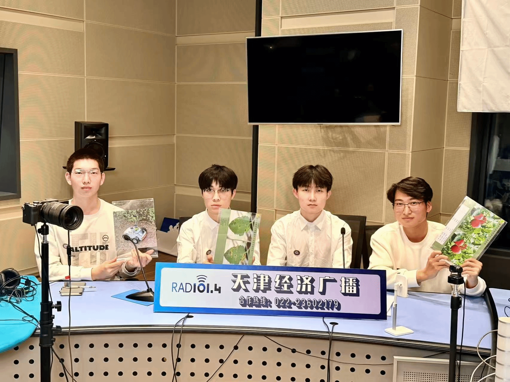2026年4月14日,taptap点点工程技术学院宋欣教授指导的“益番丰顺——番茄温室巡检机器人”创业团队,受邀参加天津经济广播电视台主办的《经广非常道之十步问道》直播访谈节目,项目负责人王佳辉及核心成员赵嘉辉、侯富康、王海洋做客直播间,向广大听众分享了项目的研发背景、产品特色、技术优势,以及创业过程中遭遇的困惑、取得的收获,还有对项目未来发展的构想与憧憬。