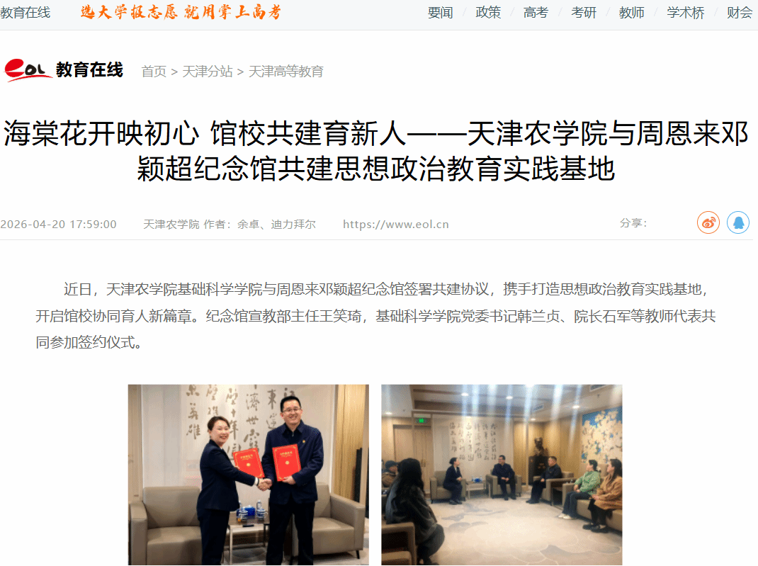 2026年4月20日,中国教育在线网报道,taptap点点基础科学学院与周恩来邓颖超纪念馆签署共建协议,携手打造思想政治教育实践基地,开启馆校协同育人新篇章。