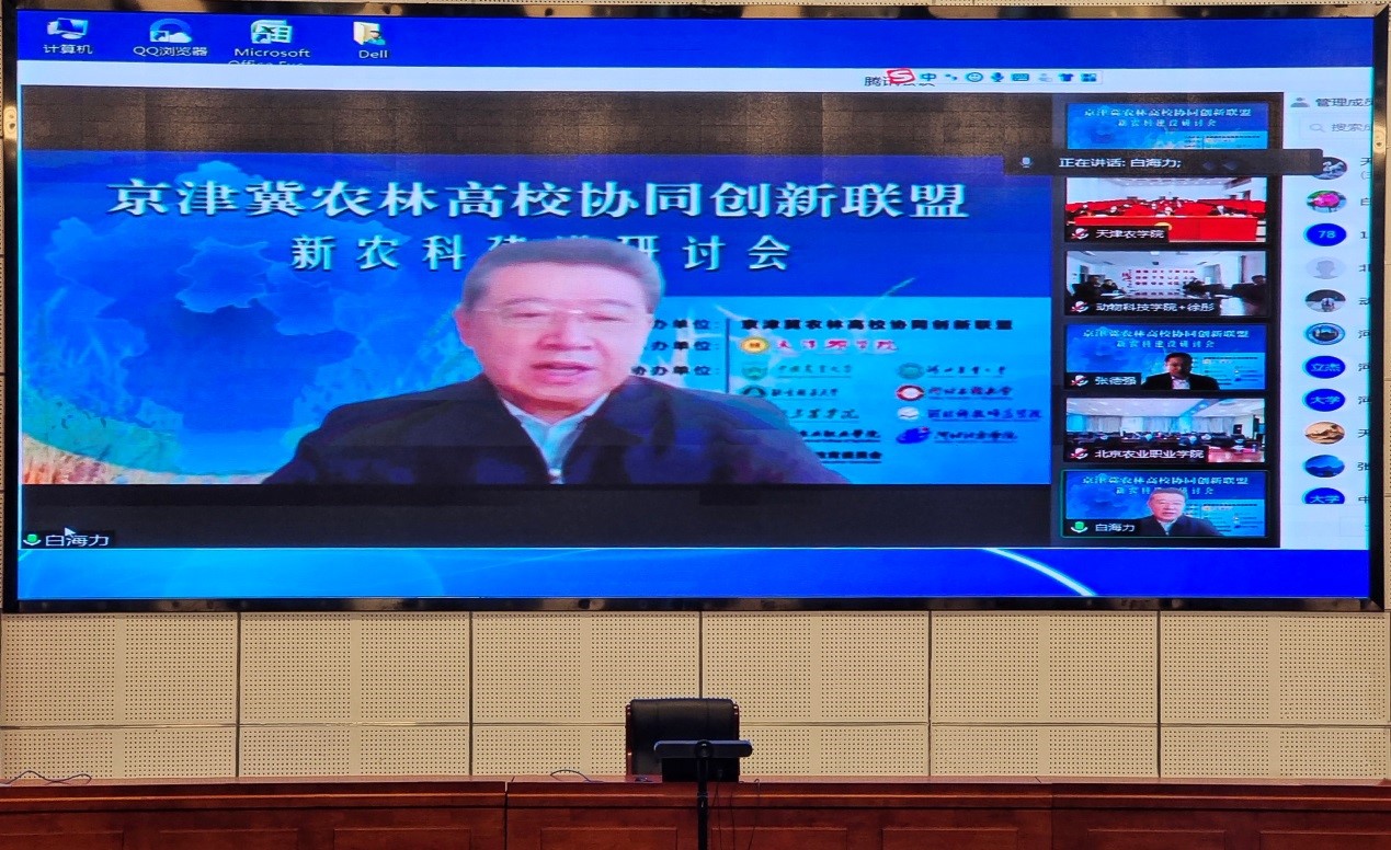 天津市教委高教处处长徐震、北京林业大学校长安黎哲、北京农业职业学院校长范双喜、北京农业职业学院副校级领导王晓华、北京农学院副校长张德强、河北农业大学副校长张立杰、河北工程大学副校长吴国英、河北科技师范学院党委副书记李佩国、河北北方学院副校长刘子刚等领导和专家,以及9所高校的本科生院常务副院长、教务处处长和有关职能处室负责同志,二级学院党委书记、院长、副院长、系主任等共100余人出席线上会议。(教务处供稿;文字:靳涛,王金鑫;摄影:陈卫东;编辑:黄宝霞;审校:田健)