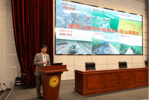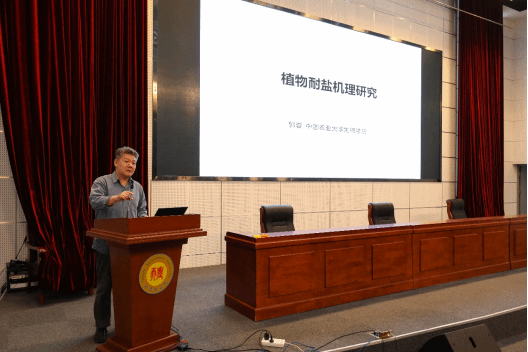 在揭牌仪式后的学术报告环节,郭岩教授和国家盐碱地综合利用技术创新中心调理剂首席专家、中国农业大学引进教授胡树文分别作了题为《植物耐盐机理研究》和《重塑土壤结构改良盐碱地技术研究》的学术报告,分享了他们在盐碱地治理领域的最新研究成果和前沿动态。