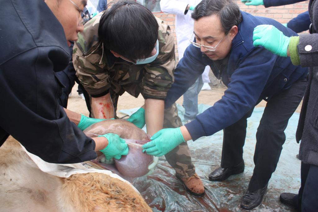 潜心走好从肉牛种业到肉牛养殖产业的科研之路。从事科研工作以来,郭宏教授深刻认识到种业是增强我国农业核心竞争力的基础,适逢2008年国家开始启动国家转基因重大专项高产转基因肉牛新品种培育,郭宏教授作为主要研究者带领团队参加了这一国家战略性项目。12年来,不忘初心,矢志不渝,不分昼夜,没有节假日,他带领团队奋战在科研一线。最终和内蒙古大学合作成功培育出基因编辑MSTN的“双肌牛”鲁西黄牛、蒙古牛和中国西门塔尔牛三个品系,“双肌牛”的产肉量平均提高25-30 %,并且从分子水平解释了“双肌牛”促进肌肉发育的机制,2020年经农业部组织的专家鉴定,成果达到同行国际领先水平。这一品种的研制为国家肉牛品种培育奠定了基础,为解决肉牛种业“卡脖子”的问题贡献了力量。为了尽快将科学技术应用于生产实践,他带领团队成员利用多组学探究肉牛肌肉生长发育的机制,在肉牛生物育种的基础研究和应用基础研究方面迈出了可喜的一步。研究成果在内蒙古自治区的多伦县、正蓝旗和乌审旗、天津、河北、山西等多个省市推广。
