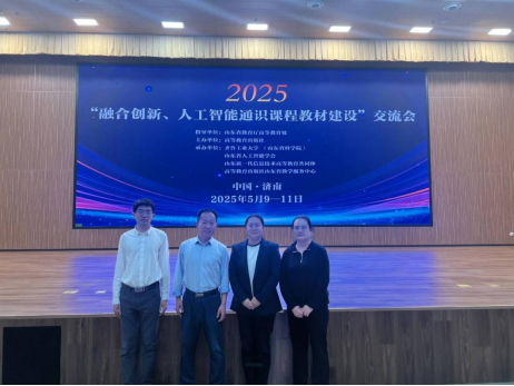 2025年5月10日,“融合创新、人工智能通识课程教材建设”交流会在济南盛大举行。本次会议由山东省教育厅高等教育处指导,高等教育出版社主办,齐鲁工业大学、山东省人工智能学会、山东新一代信息技术高等教育共同体、高等教育出版社山东省教学服务中心承办。我院常务副院长孙德刚、教学院长助理肖媛媛等四位老师参加了本次会议,与来自全国各地高校及相关企业的专家学者,共同探讨人工智能通识课程教材建设的重要议题。