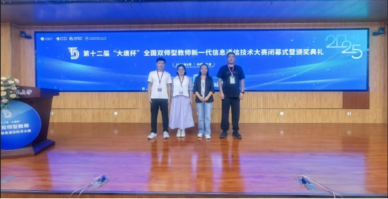 近日,第十二届“大唐杯”全国双师型教师新一代信息通信技术大赛在天津职业技术师范大学圆满落幕。beat365beat365在线唯一官网教师团队(刘文秀、沈月健、杨万帅、郝萍萍)凭借深厚的专业功底、精湛的实践能力与出色的临场发挥,在全国众多参赛队伍中脱颖而出,斩获佳绩——其中刘文秀老师荣获本科组国家级一等奖,郝萍萍、沈月健、杨万帅三位老师分别荣获本科组三等奖,充分彰显了beat365双师型教师队伍的过硬实力。