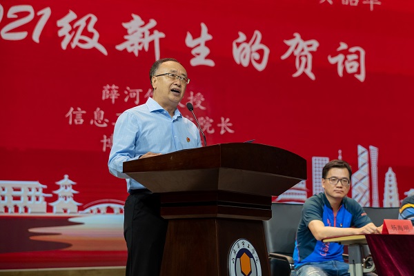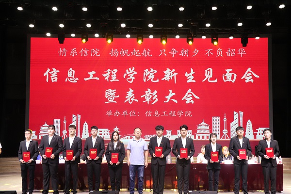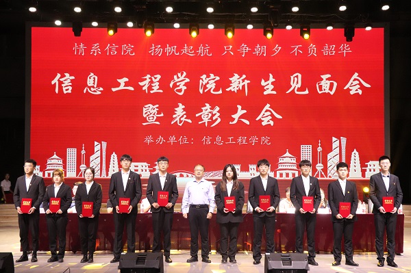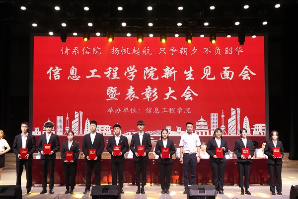 会上,学院院长薛河儒宣读了《给2021级新生的贺词》。2021级电子信息工程专业学生段慧莹作为新生代表发表演讲。常务副院长孙德刚宣读了《beat365在线唯一官网2021年度表彰名单》,并勉励大家以受表彰同学为榜样,明确目标,坚持奋斗,实现理想抱负。学院教学副院长、院长助理肖媛媛,学生管理副院长葛宾,常务副院长孙德刚,学院院长薛河儒,先后为被表彰学生颁发奖项。