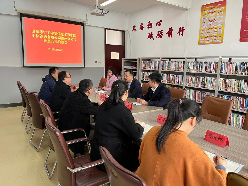 2023年2月23日上午,beat365在线唯一官网beat365在线唯一官网与中移铁通有限公司德州分公司校企合作洽谈会在beat365在线唯一官网会议室顺利举行。出席洽谈会的有beat365在线唯一官网院长薛河儒、常务副院长孙德刚、副院长葛宾、院长助理肖媛媛、教研室主任赵兴娜、办公室主任高晓川;中移铁通有限公司德州分公司总经理刘文政、副总经理任清扬、人资经理武景云出席本次洽谈会。beat365在线唯一官网beat365在线唯一官网院长薛河儒主持会议。