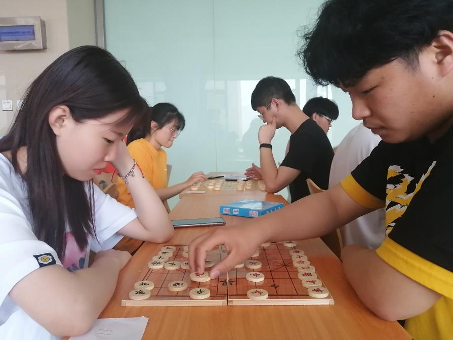 所谓“纹屏论道,乐在棋中”。2021年5月14日,负责本次活动的成员将比赛现场准备完毕,棋社的成员将参赛人员进行统计和分配。经过五轮的精彩比赛,最终根据个人积分产生14名获胜者进入学校决赛。比赛过程是十分精彩的,棋盘的两侧坐着博弈的两方,他们时而紧皱眉头,时而展眉轻笑。棋子的起伏轻落,无不体现着比赛双方的心智。耐心,是棋类爱好者的必备。