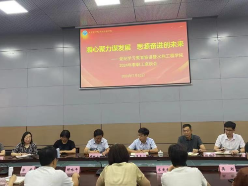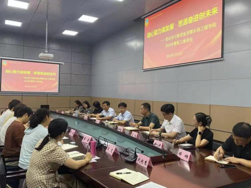 水利工程学院党委主要负责同志总结了学院紧紧围绕立德树人根本任务,开展党建与文化建设、基层教学组织建设、就业推动以及审核评估等重点工作情况。行政主要负责同志阐述了学院在系部设置、管理人员配备、人才引进、教学和科研平台建设等方面取得的实质性工作进展和成绩,分析了学院发展面临的问题。同时,参会教师围绕“凝心聚力谋发展,思源奋进创未来”的主题,结合分管工作和自身实际开展了交流汇报,分享了工作收获,提出了意见和建议。