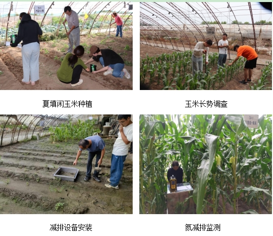 团队开展的“十四五”国家重点研发计划项目核心内容为“基于夏填闲作物种植及秸秆直接还田协同的氮磷减排试验研究”,重点解决设施夏空闲窗口期氮磷排放造成的面源污染风险问题。由于此时期正值雨季,对于设施温室揭膜空闲生产模式来说,氮磷面源污染风险非常高。基于此,该科研团队提出在夏休闲期引入种植填闲作物及其秸秆还田协同的技术措施,探索土壤氮磷减排的机制与效应。第一步,在前茬收获基础上,施用生物炭与种植夏填闲作物;第二步,开展不同处理氮磷淋溶研究与氮素气体排放研究;第三步,进行填闲作物直接还田协同试验定位监测研究。目前,该团队已经开展了第一步、第二步的田间科学试验研究,获取了大量作物长势与监测数据,为后期研究奠定了良好基础。