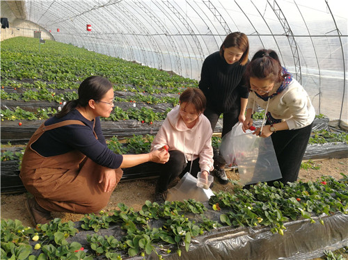 草莓是天津郊区采摘业的首要作物,也是春节期间倍受消费者青睐的果品。寒假正是草莓上市的时节,不同品种发草莓在天津市的种植情况也进入了关键时期。由于严寒及寡照,草莓企业及种植户急需冬季安全生产草莓的管理技术,于是,王丽娟教授带领团队驾车前往企业及农户处进行技术指导及调研总结,他们不辞辛苦为草莓种植户无偿解决实际问题,受到了人们的高度赞誉。除此之外,针对天津市草莓专用耐盐碱品种短缺的问题,在充分调研的基础上,团队与合作基地加紧制定育种工作方案,扩大种苗繁殖量,随行的2名硕士生在严寒等艰苦条件下,自愿吃住在科研基地,潜心研究。